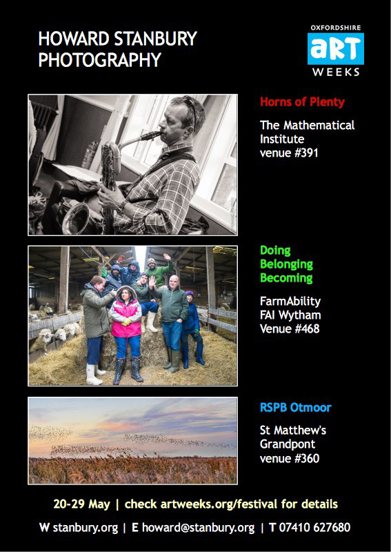 At the Mathematical Institute, venue #391, my photographs of Horns of Plenty in rehearsal and performance will be part of the group exhibition by Oxford Photographers, nine local photographers showing pictures covering a diverse range of styles and subject matter.
